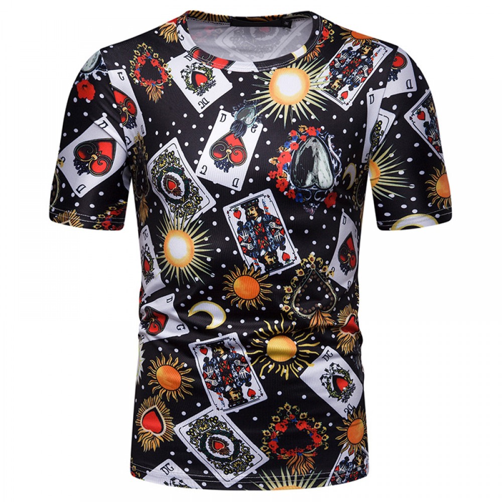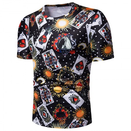 New Summer Men's Playing Card Printing Short-Sleeved T-Shirt