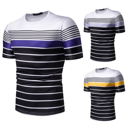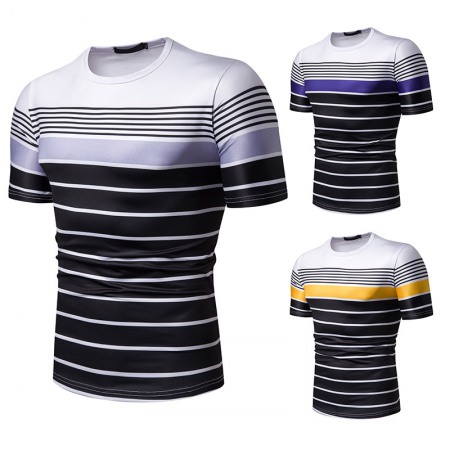 New Summer Men's Short-Sleeved T-Shirt Mens Contrast Striped Slim Casual T-Shirt